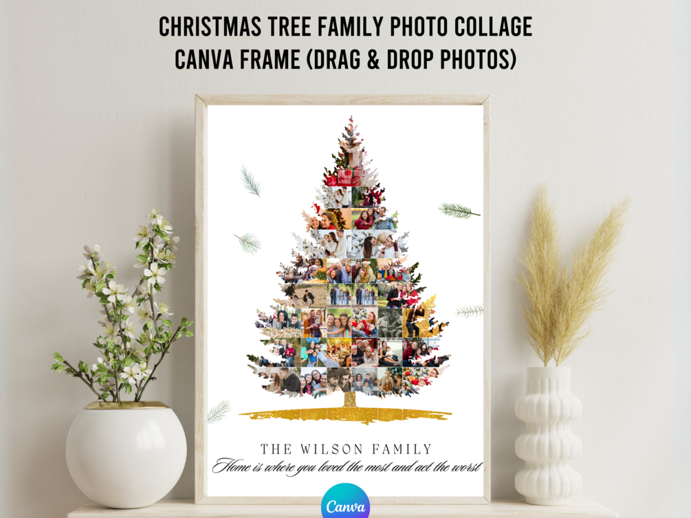 Family Christmas photo collage Canva Frame, Photo Collage, drag and drop, christmas gift, xmas family, editable, Home Decor, social media
